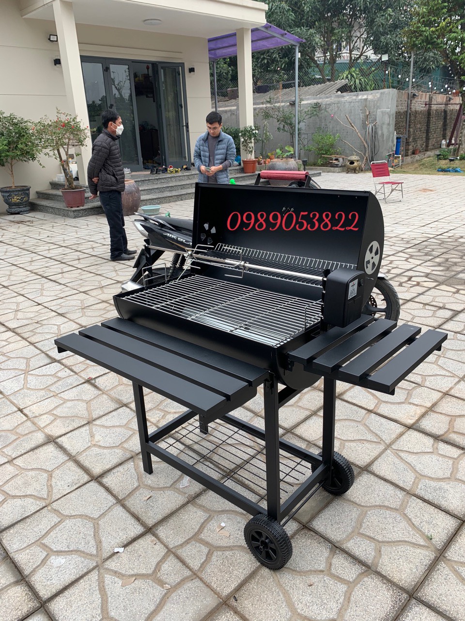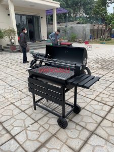Bếp nướng BBQ-05 – đen có moto xoay: Thích hợp thêm moto xoay có thể quay gà, vịt, thịt,… Bếp nướng phù hợp cho nướng gia đình, sân vườn, picnic, đã ngoại.