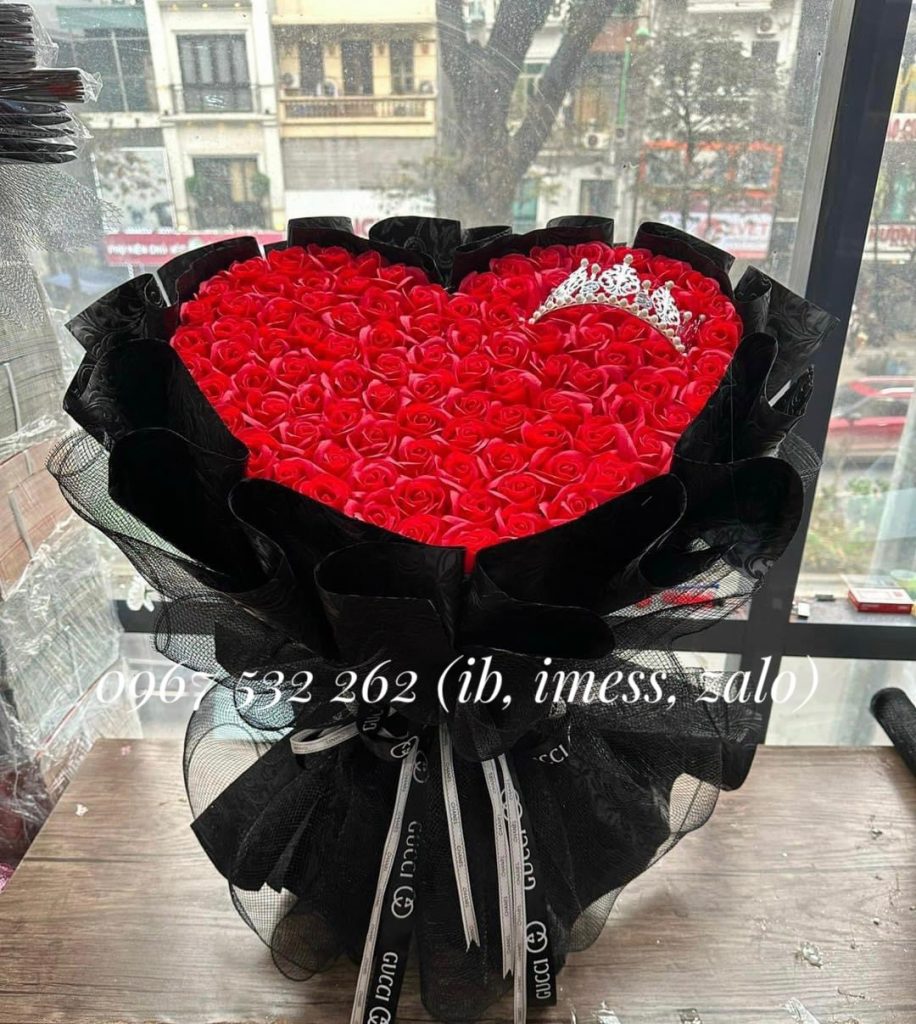 Bó hoa trái tim 99 bông sáp mềm mại