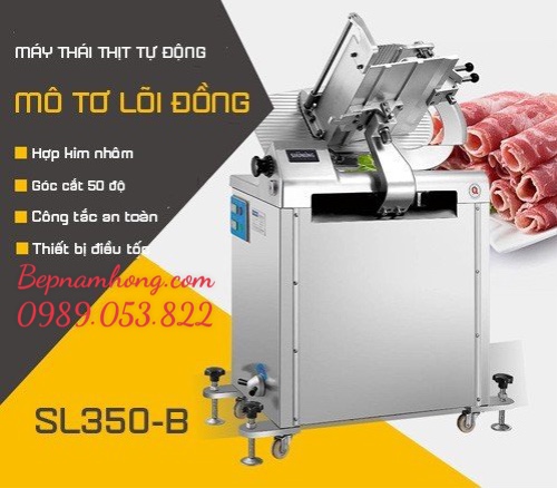 Máy thái thịt SL 350B là dòng máy thái thịt công nghiệp chuyên dùng để thái thịt chín và thịt đông se lạnh thành các lát mỏng, đều nhau và cuộn tròn hấp dẫn. Với khả năng thái thịt khỏe, năng suất đạt 100-150kg/h, thiết bị chính là trợ thủ đắc lực cho các nhà hàng – khách sạn, quán lẩu nướng và các cơ sở chế biến thịt chuyên nghiệp hiện nay.